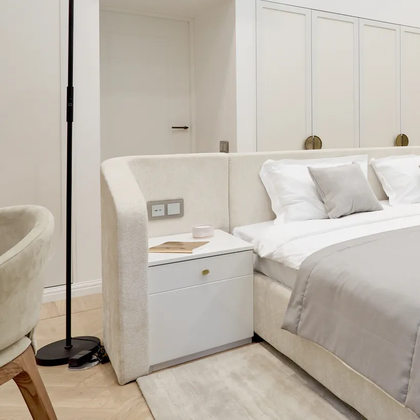 Благодаря продуманному сочетанию света, природных материалов и современных технологий, спальня превратилась в функциональное и элегантное пространство. Как отметили авторы проекта, каждая деталь сыграла свою роль в создании гармоничного интерьера, где комфорт сочетается с умиротворяющей атмосферой .